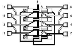 一、使用條件 SSV系列單線遞進式分配器適用于公稱壓力為30MPa以下的單機或小型干稀油單線集中潤滑系統(tǒng)中。它靠殼體內(nèi)部的活塞將由入口輸入的潤滑劑以預(yù)定的量可靠地和強制性地分配。該型分配器左右兩側(cè)均有吐出油口,不同吐出口數(shù)的安裝尺寸相同,吐出口派生合并增大給油量與手動、氣動或電動潤滑泵相連接可組成簡單,費用低廉的小型集中潤滑系統(tǒng),也可與大型集中潤滑系統(tǒng)中的單線或雙線分配器連接作為輔助分配器進行二級分配。