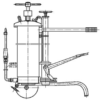 JRB-3型腳踏潤滑泵主要由貯油器,柱塞泵、打氣筒操縱裝置四大部分組成。