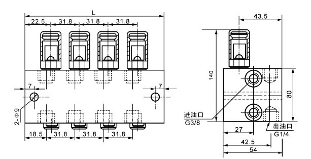 一、使用條件 VSL-KR型雙線分配器上下面均有給油口,分配器活塞正反向動作時(shí)分別從上面和下面的給油口排出潤滑脂;在相應(yīng)上、下給油口內(nèi)設(shè)有合二為一的排油結(jié)構(gòu),要改變奇數(shù)出油,只需將孔內(nèi)的螺釘擰出即可。還可以從指示桿的動作直接觀察分配器的工作情況,同時(shí)還可以通過調(diào)整螺釘在規(guī)定范圍內(nèi)調(diào)整各出油口的給油量。 該型分配器適用于公稱壓力為40MPa的雙線式干油集中潤滑系統(tǒng)中,在兩條供油主管交替的供油壓力作用下,直接由供油壓力控制活塞動作給油,完成向潤滑點(diǎn)定量分配潤滑脂的功能。